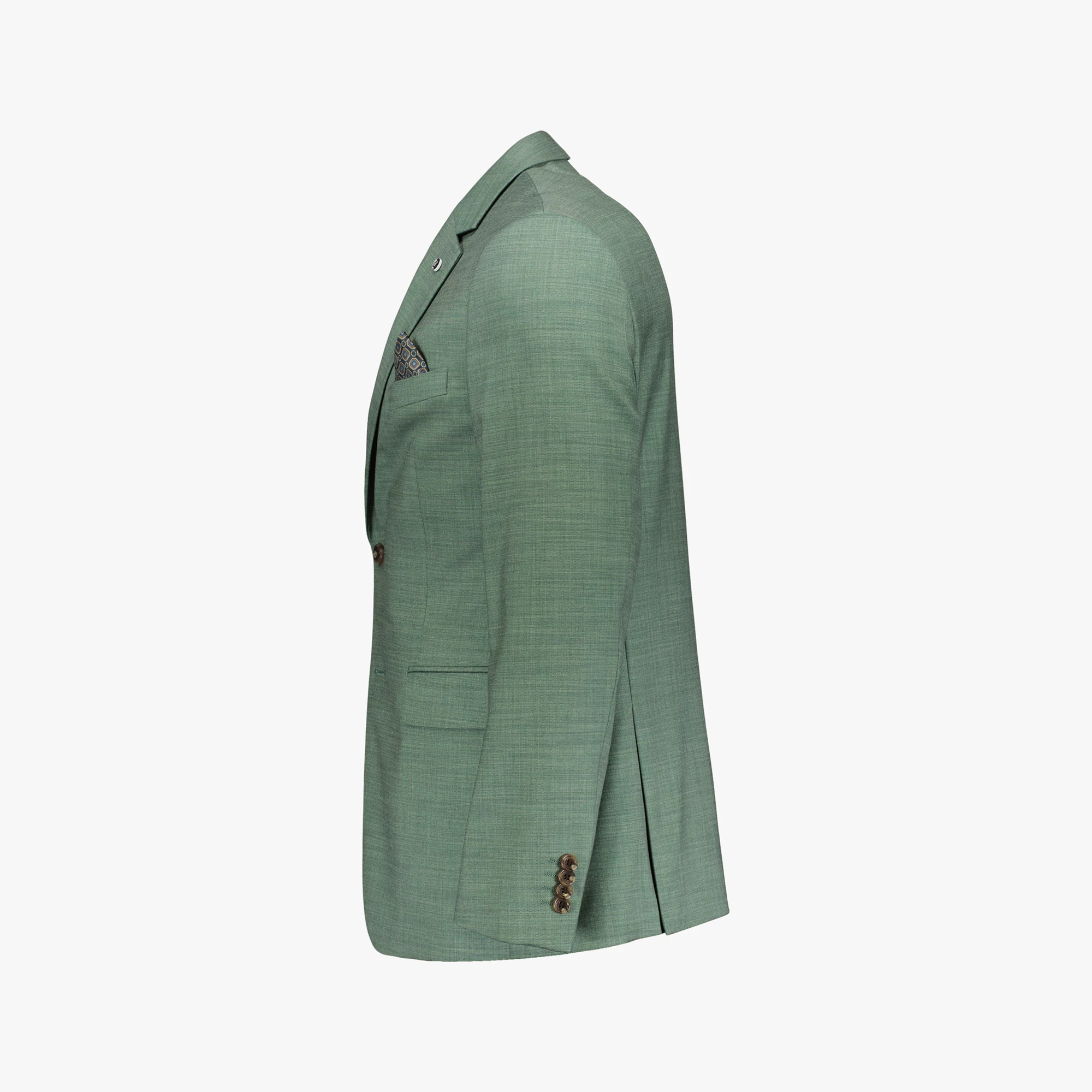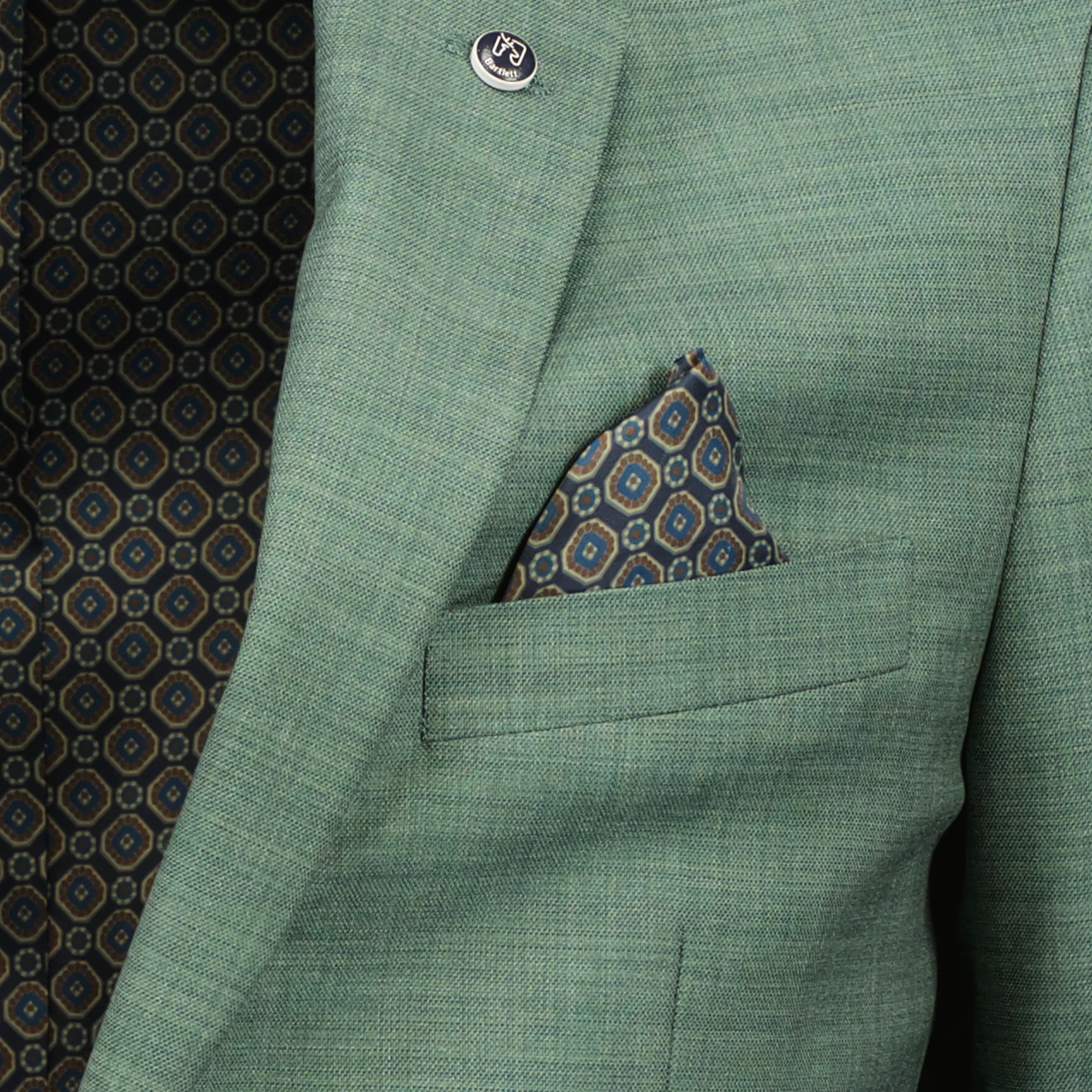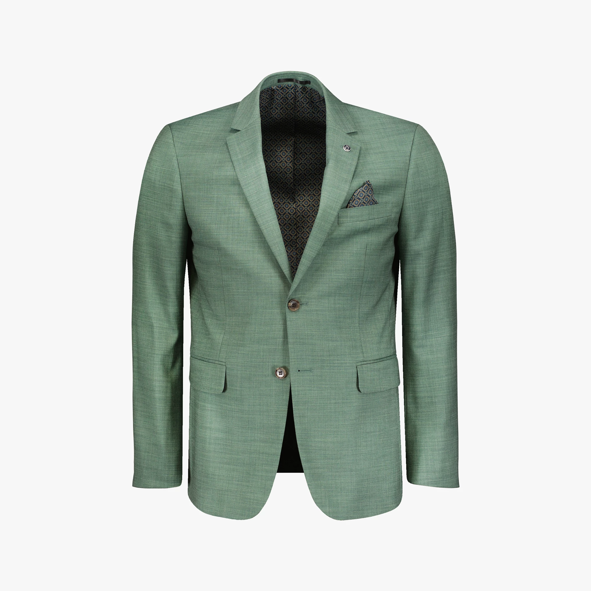 Gemêleerd Bartlett Dress colbert gevoerd met motief. De voorzijde is voorzien van een single breasted knoopsluiting, twee klepzakken en een borstzak waarvan de voering als pochet gedragen kan worden. Het colbert heeft aan de binnenzijde drie zakken en de achterzijde is voorzien van twee splitten voor optimaal draagcomfort. Het colbert is afgewerkt met een speld op de revers en vier knopen op de mouw.
